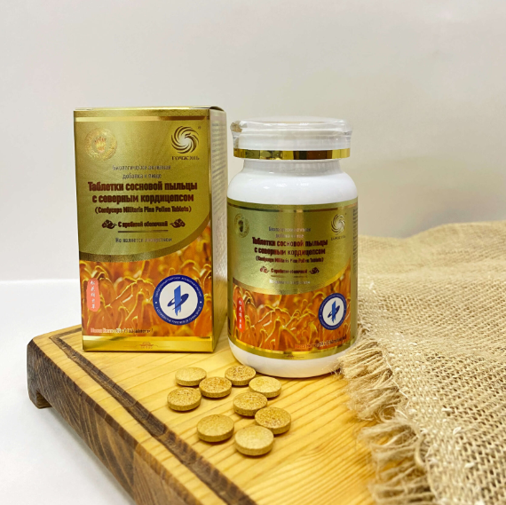 Состав: порошок кордицепса военного (Cordyceps Militaris), порошок кордицепса китайского, порошок сосновой пыльцы с пробитой оболочкой, порошок пчелиной пыльцы цветков рапса с пробитой оболочкой, изомальтит, мальтодекстрин, мкц.